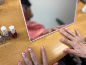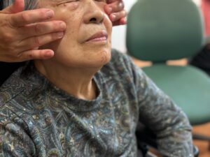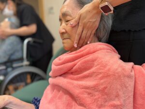 順番を待っていた男性の入居者さまに「あんたもやるのか?」とお声をかける女性の入居者さま