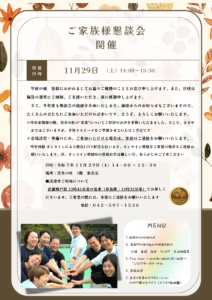 令和7年11月30日(土)14時00分~ ご家族様懇談会を開催いたします!!