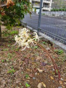 白い彼岸花「シロバナマンジュシャゲ」ともいわれるそうです。