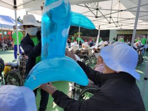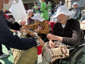 3.入居者リレー&職員競技(パン食い・ムカデ・車椅子リレー)