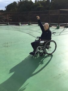 レクリエーションの時間に屋上で日光に当たります\( ˆoˆ )/