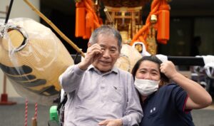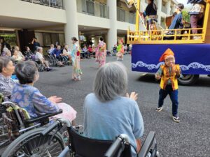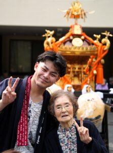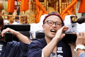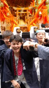 晴天のなか、神輿を担ぎ「ソイヤッ ソイヤッ ( 」´0`)!!」と叫びながら登場!!