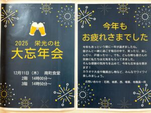 「告知」入居者様向け「大忘年会」開催のお知らせ(栄光の杜)