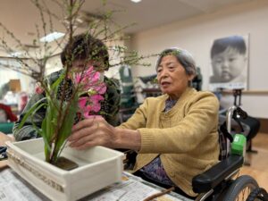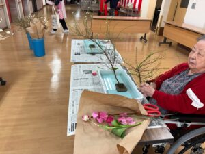 これは「ユキヤナギ」ね!!と、季節をさきどるお花・植物を楽しみながら、おもいおもいの感性で活ける時間を過ごされました(*^^*)
