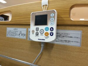 見守りケアシステム M-2R は、ベッド本体に内蔵されているセンサー技術を活用し、ベッド上での動きや生活リズムを常時把握。転倒の可能性等の異常の兆候を検知した際には、速やかにナースコールに連動してお知らせしてくれます。カメラを使用しない設計により、プライバシーにも十分配慮しています。