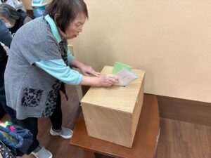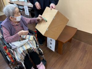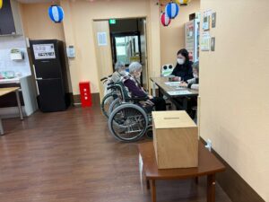 初めてこういった施設での不在者投票させる入居者様もおり、緊張した面持ちでそれぞれのおもいをのせた一票を投じました∠( ̄^ ̄)