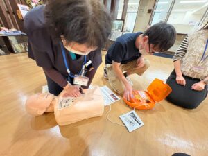 ~応急救護訓練及び心臓マッサージ(AED)訓練~です