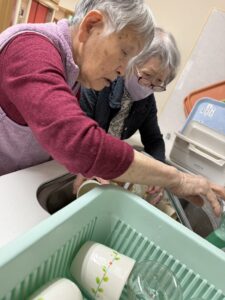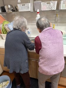 時折、コップ洗いをお願いすると、「私にもやらしてよ、得意だから」とタイミングよくシンクに集合!!