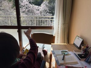 この季節は、外の景色も堪能しながら、「この角度からみるのがよいのよ」と嬉しそうに話されておりました( *´ω`* )